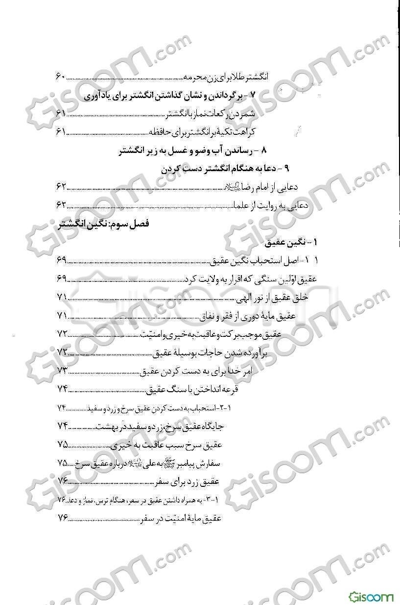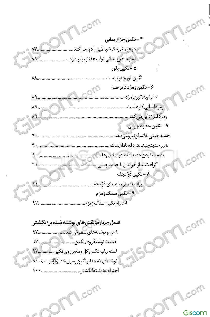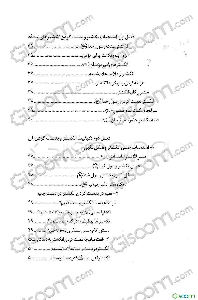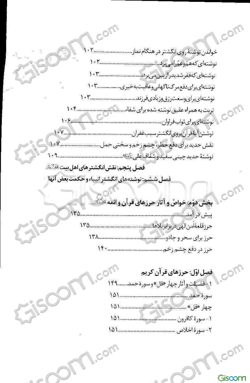 توضیح کتاب:«یکی از زینتهایی که از دیرباز در میان انسانها مرسوم بوده، زینت انگشتر و نگین است. انگشتر و نگین آن، همواره از اهمیت ویژهای برخوردار بوده است» نگارنده در این اثر به تبیین خواص و آثار انگشتر و حرزهای قرآن و ائمه پرداخته است. چگونگی انگشتر و بدست کردن آن، چگونگی قرارگرفتن انگشتر در انگشتان دست، حرمت و کراهت بعضی از انگشترها، نگین انگشتر، نقشهای نوشته شده بر انگشتر، حرزهای قرآن کریم و ...، موضوعات و مطالب مندرج در این اثر است.