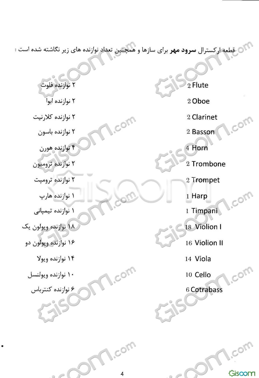 موسیقی برای ارکستر - پارتیسیون