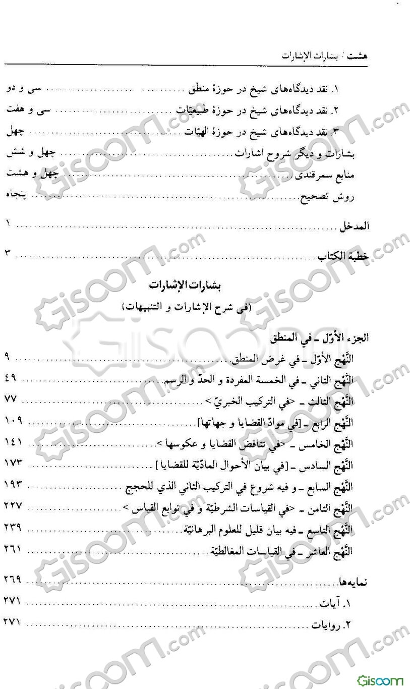 برچسبهای کتاب بشارات الاشارات فی شرح الاشارات و التنبیهات: فی المنطق (جلد 1)