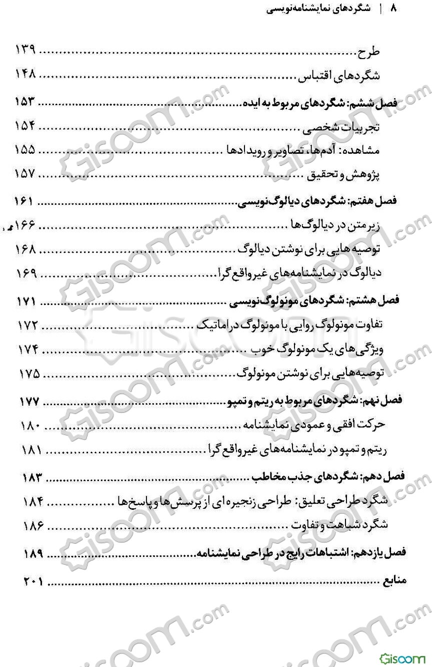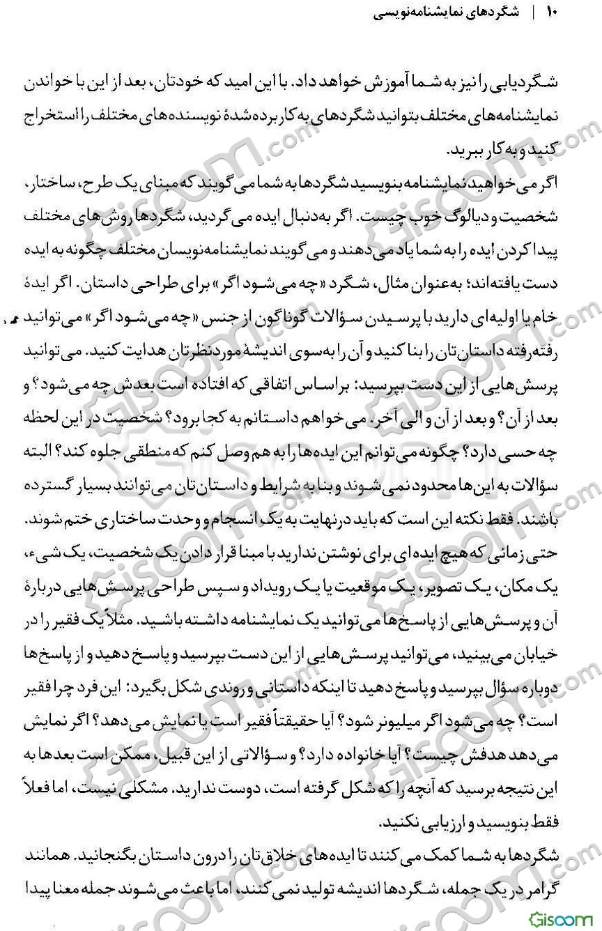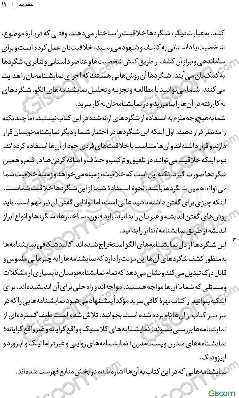 توضیح کتاب:نویسنده در این کتاب شگردهای نمایشنامهنویسی، انواع شگردها، فنون و تمهیدات نوشتن یک نمایشنامه را آموزش میدهد. در ابتدا به سه عنصر بنیادین یک نمایشنامه یعنی «تم» یا «اندیشه مرکزی»، «طرح» و «شخصیت» پرداخته میشود. این سه عنصر به این دلیل بنیادین هستند که هم در نمایشنامههایی با ساختار ارسطویی و واقعگرا و هم در نمایشنامههای غیرارسطویی و غیرواقعگرا وجود دارند. سپس شگردهای مربوط به ژانر و سبک، شگردهای اقتباسی، شگردهای انتخاب ایده و شگردهای دیالوگنویسی و مونولوگنویسی، شگردهای حفظ تمپو، ریتم و حال و هوای نمایشنامهنویسی شرح داده میشود. در پایان نیز شگردهای جذب مخاطب و شگردهای بازنویسی و یافتن اشکالات نمایشنامه و راهحل آنها ارائه میشود.