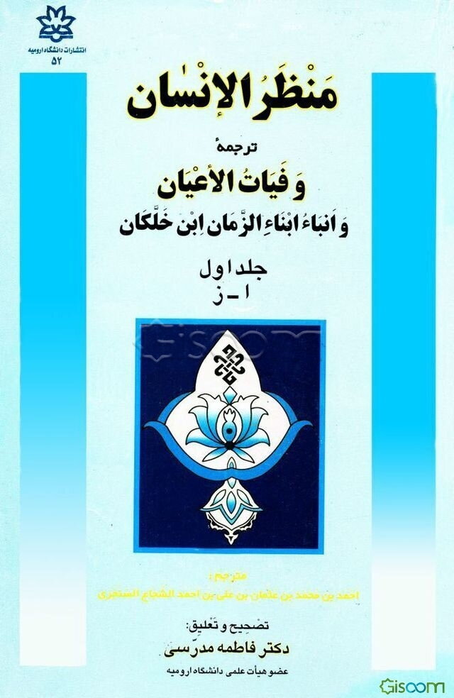 توضیح کتاب:(از مجموعۀ 3 جلدی)کتاب "وفیات الاعیان و انباء ابنا تالیف ابن خلکان یکی از آثار برجسته در فن رجال است که در سرگذشت دانشمندان ایران و اسلام نوشته شده است. مولف این کتاب را که مشتمل بر شرح حال 846 تن از شخصیتها، امرا، وزرا، علما و عرفاست به ترتیب حروف معجم تنظیم کرده است. کتاب حاضر را یوسف بن محمد بن عثمان بن علی بن احمد شجاع سنجری به نام منظرالانسان فی ترجمه وفیات الاعیان پس از موازنه بیست و پنج کتاب دیگر تاریخ به فارسی ترجمه کرد (893 - 895). اصل کتاب در موزه بریتانیاست به شماره 16714 نوشته 1012 (فیلم 1486 دانشگاه تهران) که این تصحیح از روی میکروفیلم آن فراهم آمده است. جلد نخست این مجموعه با معرفی "ابراهیم نخعی" آغاز میشود و با "زینب بنت الشعری" خاتمه میپذیرد.