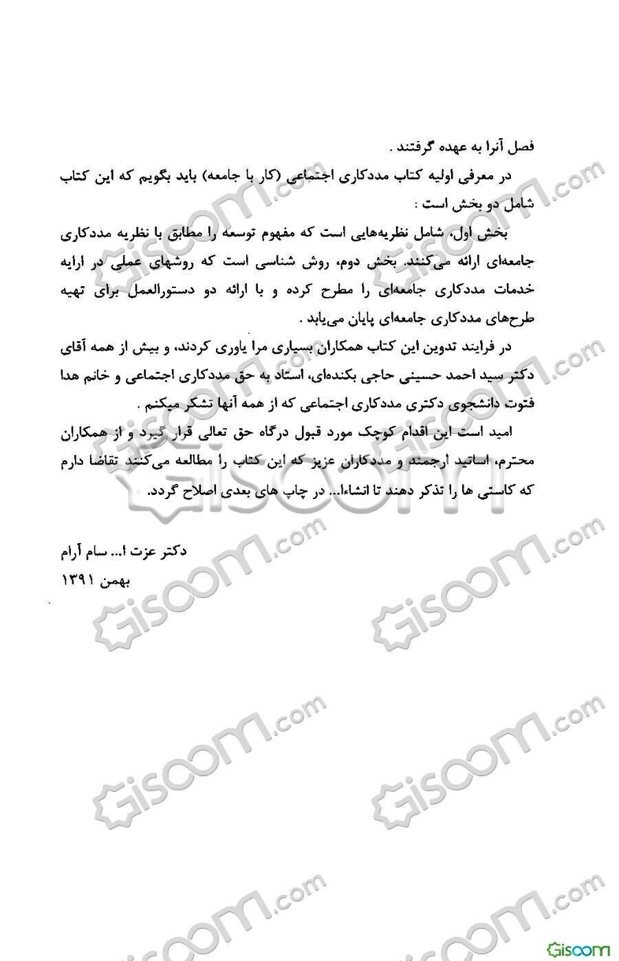 توضیح کتاب:کتاب حاضر، به موضوع مددکاری اجتماعی و خدمات اجتماعی اختصاص دارد که در دو بخش تنظیم شده است. در بخش اول مبانی نظری در مددکاری مطرح و موضوعاتی از قبیل تعریف مددکاری اجتماعی، مقایسه روشهای مددکاری اجتماعی، طبقهبندی انواع جوامع انسانی و تفاوتهای اجتماع سنتی و مدرن و صنعتی و همچنین نظریههای مکاتب مختلف جامعهشناسی بیانشده و مفهوم توسعه مطابق با نظریههای مددکاری جامعهای ارائه شده است. در بخش دوم روشهای عملی در ارائه خدمات مددکاری جامعهای مطرحشده و دستورالعملهایی برای تهیه طرحهای مددکاری جامعه گنجانده شده است. کتاب، باهدف آشنا کردن مخاطب بهخصوص دانشجویان رشته مددکاری اجتماعی با مفاهیم مددکاری و خدمات آن تهیه شده است.