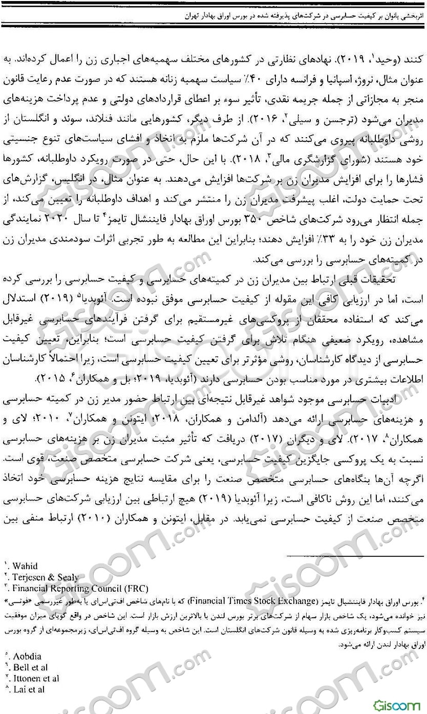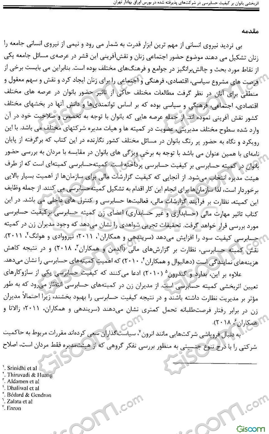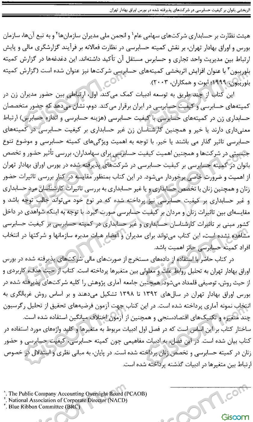 اثربخشی بانوان بر کیفیت حسابرسی شرکتهای پذیرفته شده در بورس اوراق بهادار تهران