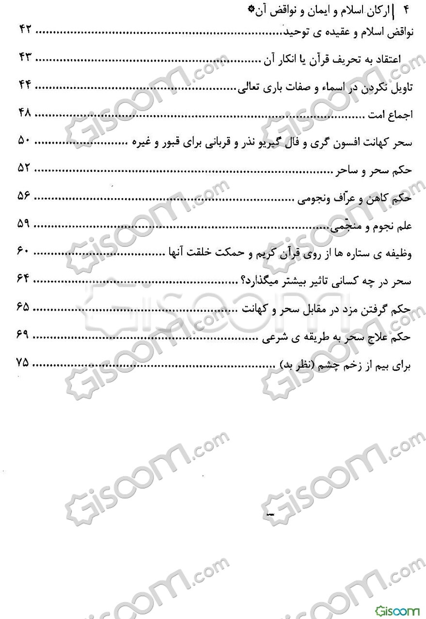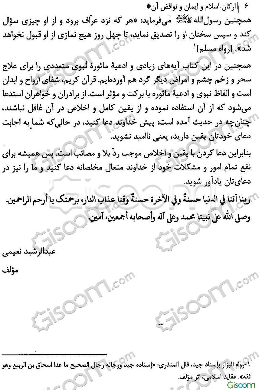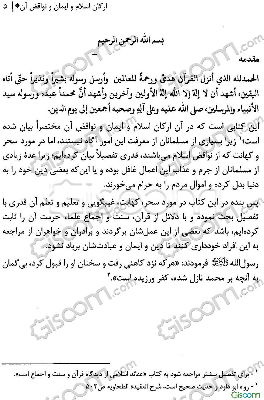 ارکان اسلام و ایمان و نواقض آن. سحر و کهانت و زخم چشم و علاج شرعی