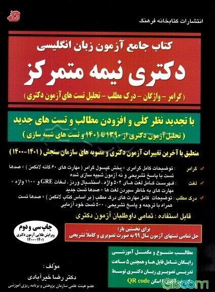 کتاب جامع آزمون زبان انگلیسی دکتری نیمه متمرکز (گرامر - واژگان - درک مطلب - تحلیل تستهای آزمون دکتری) ...